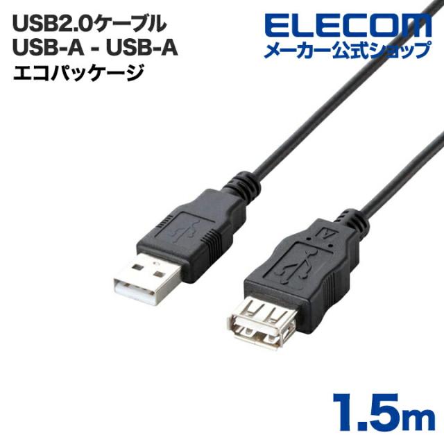 エレコム USBケーブル 1.5m エコUSB2.0延長ケーブル(AM-AFタイプ) ブラック 1.5m┃U2C-JE15BK