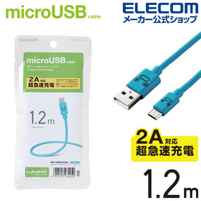 エレコム microUSBケーブル 2A対応 充電 データ通信 1.2m カラフル ブルー┃MPA-FAMB2U12CBU