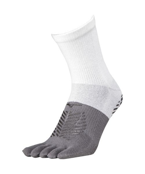 両面にグリップ力を有する5本指ショートソックス。4か所の滑り止めでグリップを高める設計。肌面にはナノフロント糸を使用し、グリップ力向上。