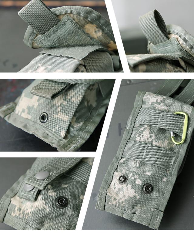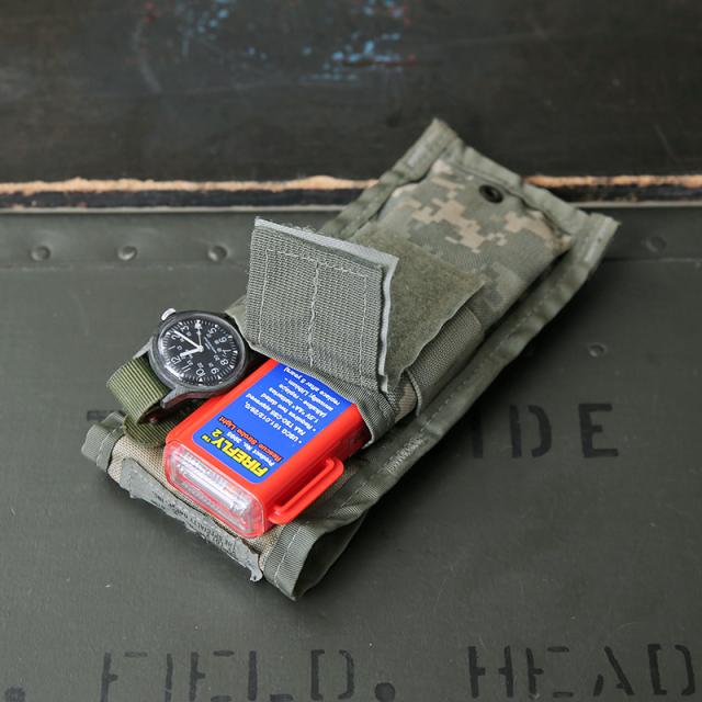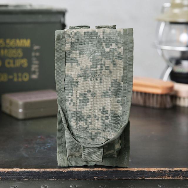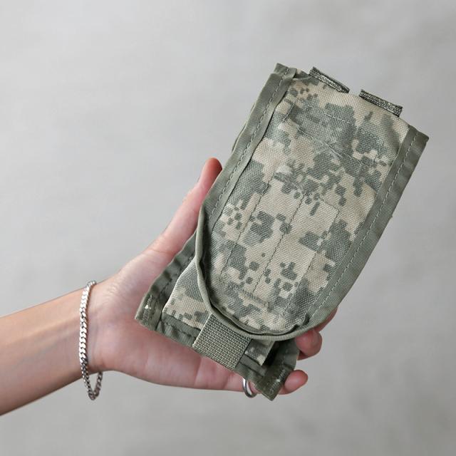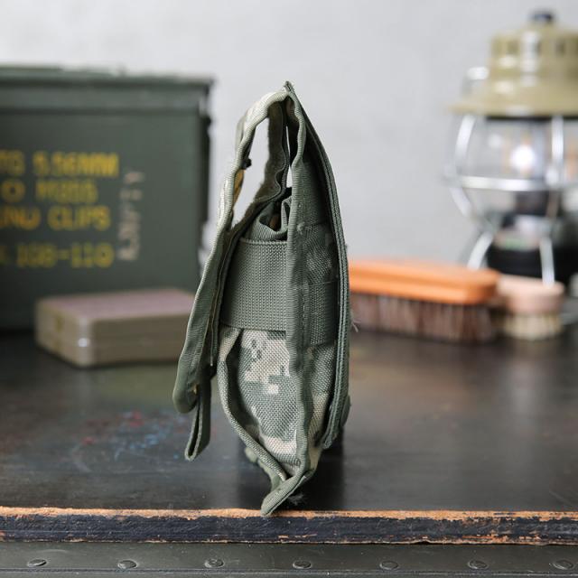 | 商品説明 | 実物 USED 米軍 MOLLE II M-4 ダブル マガジンポーチ ACUのご紹介です。 制式名称:MOLLE II M-4 DOUBLE MAG POUCH 米陸軍放出のM4 マガジン収納用のマグポーチです。 フラップがポーチ全体を覆っているようなデザインで、ベルクロで開閉も楽に行なえます。また、背面にMOLLE対応のストラップが装備されており、ベルトやバックパックなどに簡単に取り付けることが可能になっています。 本来は5.56mm、M16またはM4マガジンが2本入る、片手にフィットするサイズ感の小型ポーチ。 充電コードやイヤホンを入れたり、普段の身の回りの小物の整理にぴったりのアイテムで、旅行やアウトドア時のプラスワンポーチとしてバッグに付けて置くのにもオススメです。 |