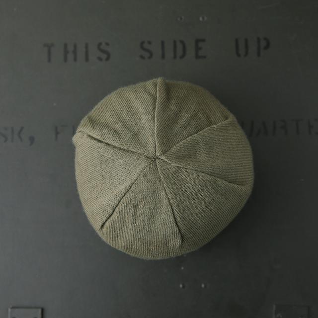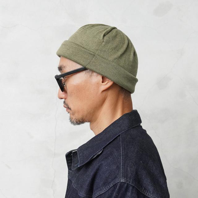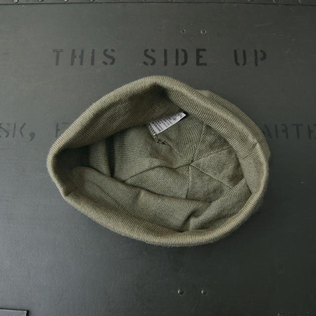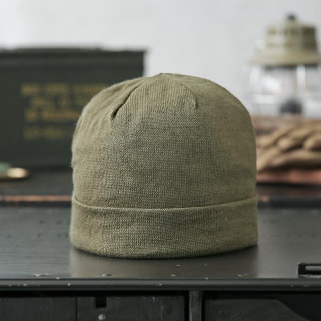 イタリア海軍の防寒性もありながら、軽くて柔らかなニットキャップです。薄手のウールニット地が二重になった作りで、額にあたる部分には、汗止めの柔らかい芯が入って補強されています。滑らかな光沢感と触り心地のウールで、薄手なので、真夏以外のほとんどの季節でコーディネートに取り入れやすいアイテムです。 絶妙なくすみカラーの薄いオリーブカラーが魅力的で、男女ともに重宝します。