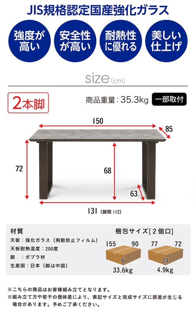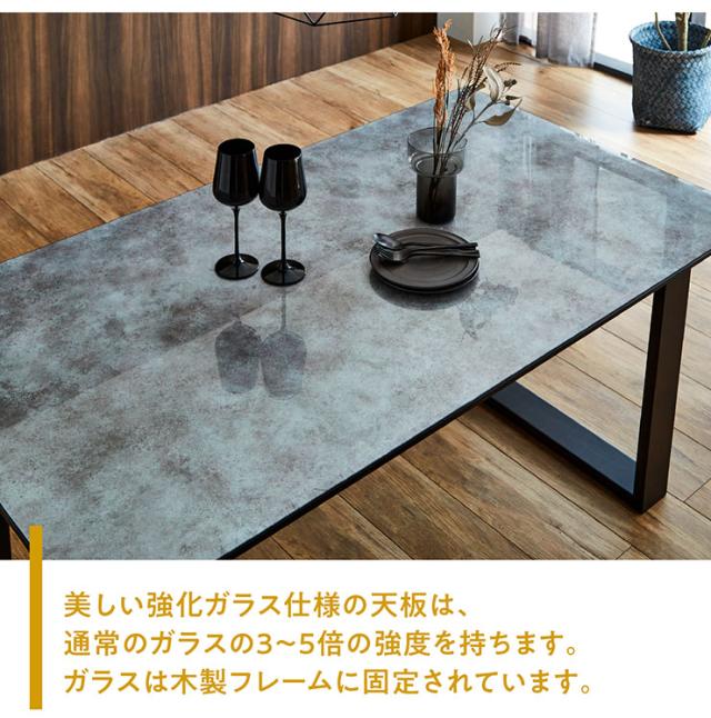 ダイニングテーブル 幅150cm ガラス天板 グレー 2本脚 4人掛け 耐熱 飛散防止 強化ガラス 食卓テーブル リビング 作業台 ミーティング おしゃれ シンプル モダン