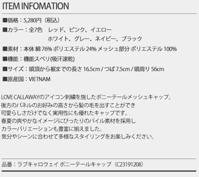LOVE CALLAWAYのアイコン刺繍を施したポニーテールメッシュキャップ。