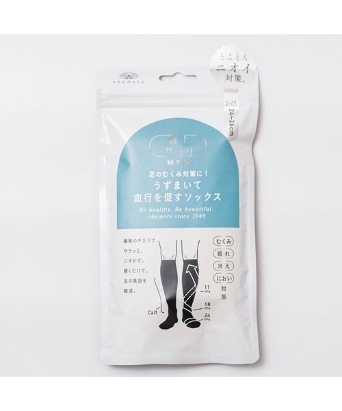 【きつすぎない着圧】つちふまずから足の筋肉に沿ってうずまき状に圧をかけるスパイラル着圧(特許取得)により、しめつけすぎることのない力加減。その秘密は、つちふまず、足首、そしてふくらはぎをバランスよくしめつける独自設計。血行促進、足のむくみ軽減に。【とことんニオイ対策】「湿気をとり、消臭する」ブリーズファイバー(特許取得)が、足のムレとニオイを軽減。こんな方にお勧め・・・◎出張が多い◎長時間立ちっぱなし◎長時間座りっぱなし立ち仕事だけでなく、外回り・出張・旅行のときや、デスクワークでも。