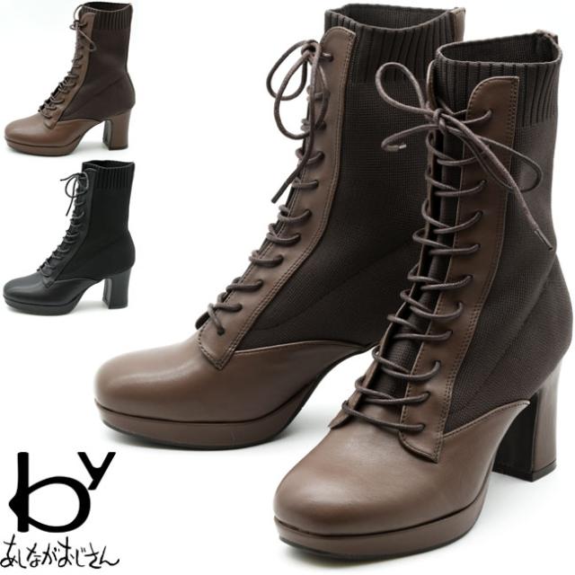 byあしながおじさん レースアップブーツ 厚底 ニットブーツ 厚底ブーツ
