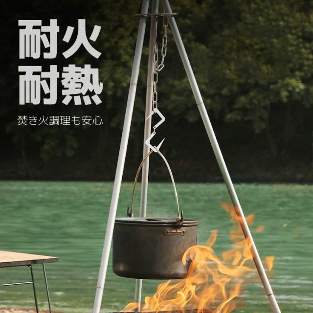 耐荷重は8kgとパワフルな作りで仕上げ、耐火性、耐熱性にも優れているので、クッカーやランタンなどの各種アウトドアギアの吊り下げはもちろん、焚き火時の調理など幅広い用途とシーンで活躍します。