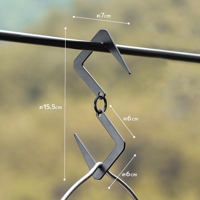 ステンレスS字フック 2個セット シルバー/マットブラック アウトドアフック 耐荷重8kg 高耐久 耐蝕 耐熱 耐火 ランタンフック TWSH02S
