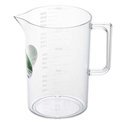 | 容量:2L(2000cc) 最大目盛:2000cc 最小目盛:100cc(100cc刻み目盛) サイズ:外径132*高さ192mm(取っ手含まず) 耐熱温度:70度(電子レンジ・食洗機は使用不可) 包装形態:袋入 材質:メタクリル樹脂(アクリル) |