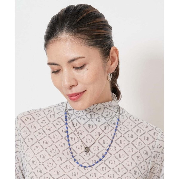 短めのネックレスとチェーン風のパーツに色をのせたロングネックレスとの2点セット。セットで使うのはもちろん、その日のコーディネートに合わせて別々でも使える汎用性の高いネックレス。ロングネックレスのアジャスターはスライドで自由に長さ調整していただけるのも魅力的。きちんと感があるのでお仕事服にもぴったり。