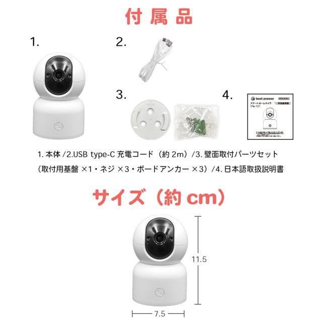 【検索キーワード】 据え置き 据置き 置型 防犯カメラ カメラ 録画 小型 無線 動体検知 会話 通話 壁設置 天井設置 WIFI