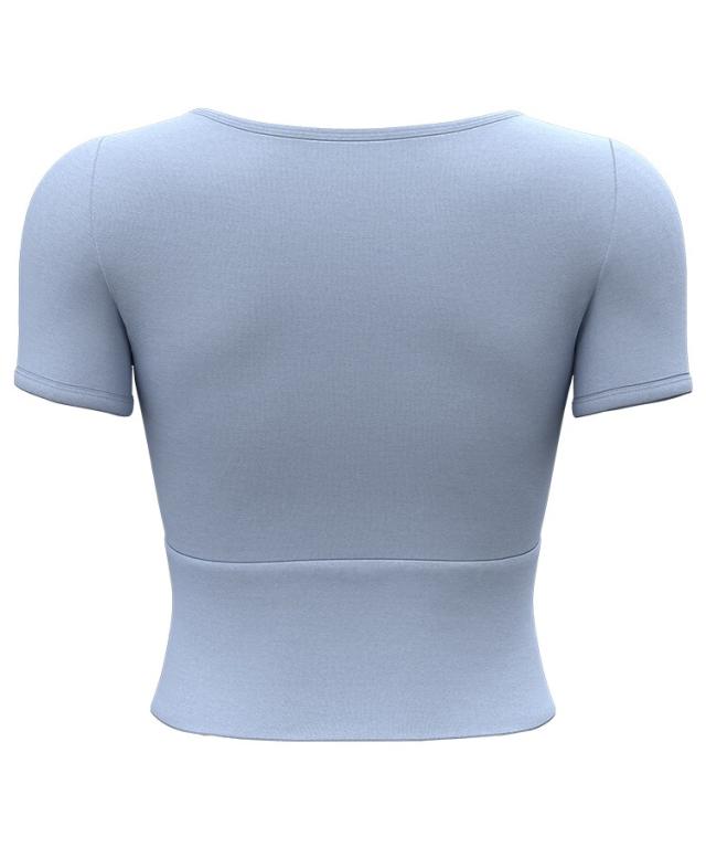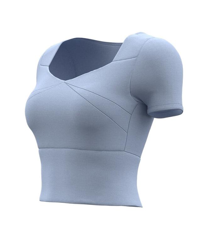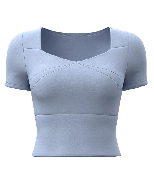 女性らしい雰囲気を演出し、一気にトレンド感を醸し出してくれるダイヤネックデザインのクロップド丈半袖トップ。
