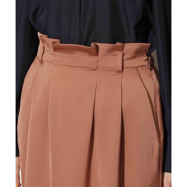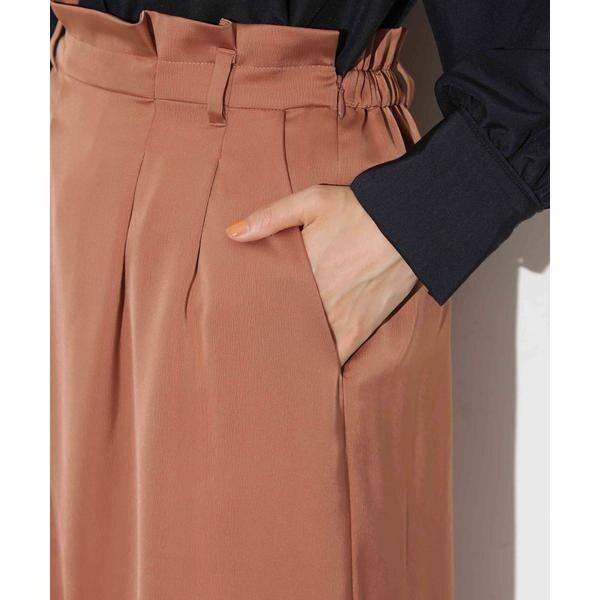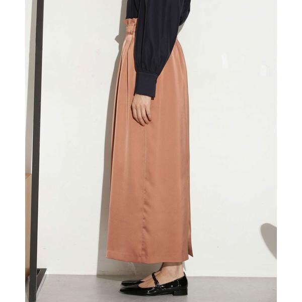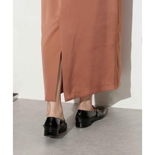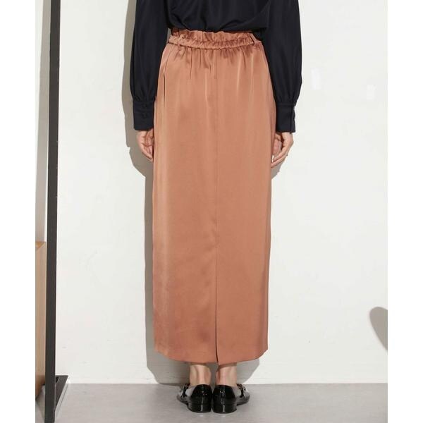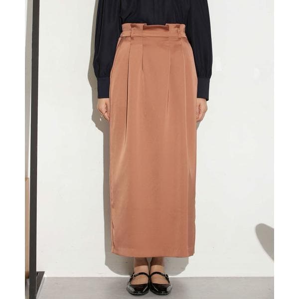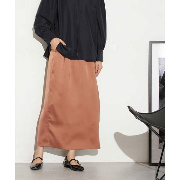 ・しなやかな光沢感がエレガントに映えるサテン素材のスカート