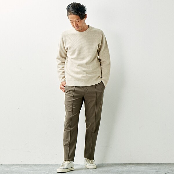 ・凹凸のある細かいリップル組織を採用しているので、一枚でも様になる雰囲気を持っています。