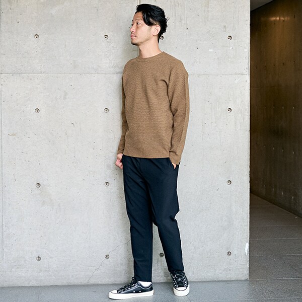 ・カットソーライクにも着れるベーシックなクルーニットで、様々なシュチュエーションに合わせることができるカラー展開になっています。