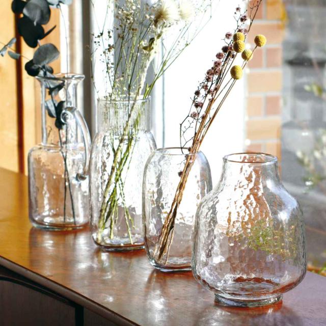 シンプルなデザインでお花の魅力を最大限に引き出すシナリーベース。ハンドメイドの1点1点異なる表情が温もりを感じ、気泡や傷なども風合いとして楽むことができます。デザイン違いのシリーズで並べて飾れば、統一感も出るのでおすすめです。