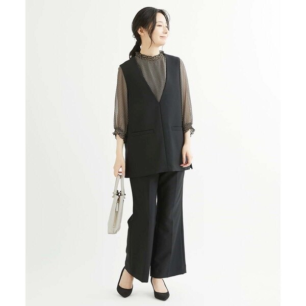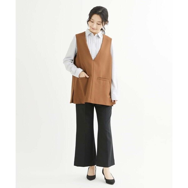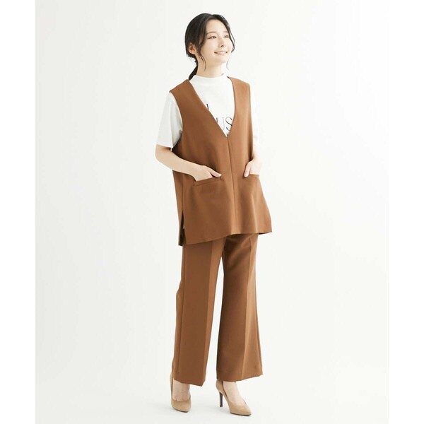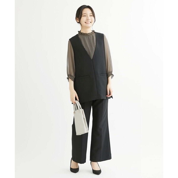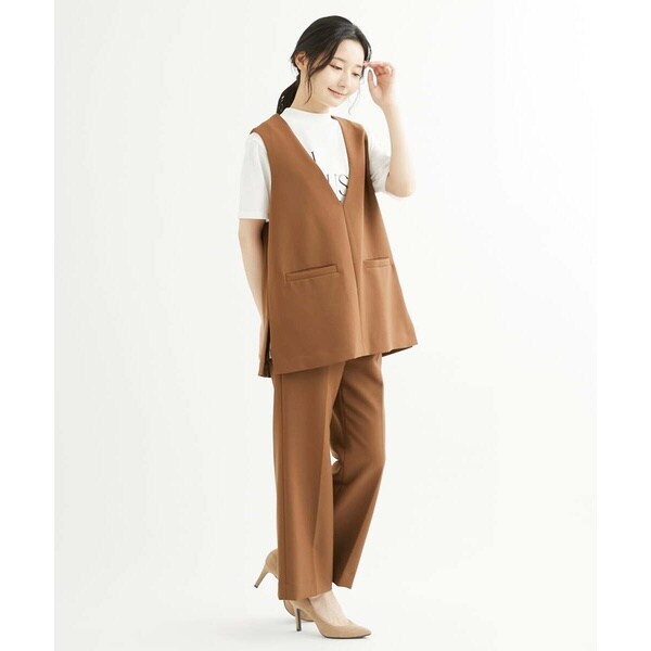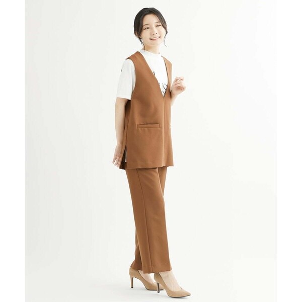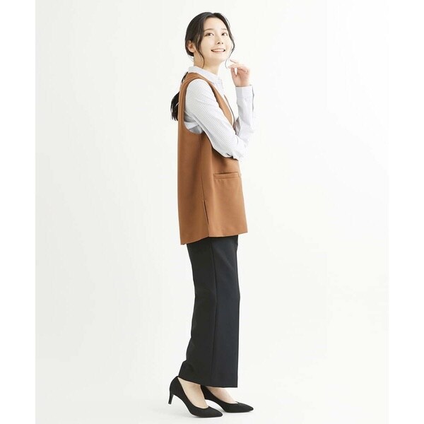 トップスをインしても良し、そのままアウトでも決まる万能パンツ。コーディネートを選ばず着こなせるパンツはお仕事などきちんと感が必要なシーンにも大活躍の予感。同素材のベスト【F1JJS26180】もご用意していますので、セットアップでも着用いただけます。