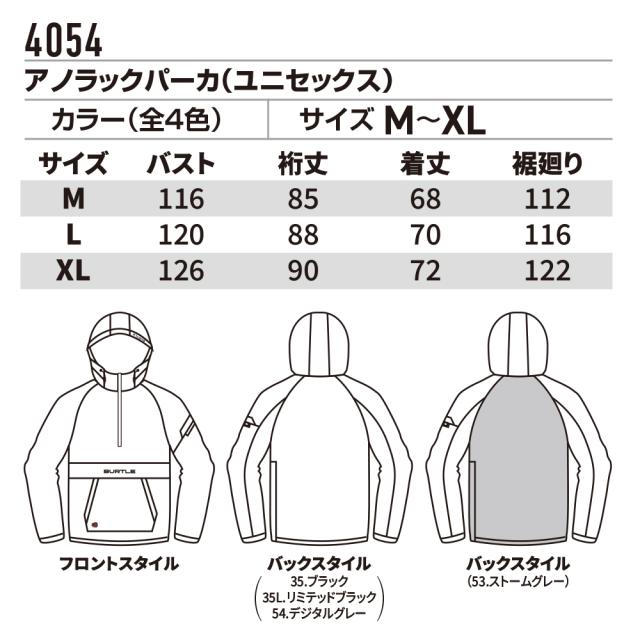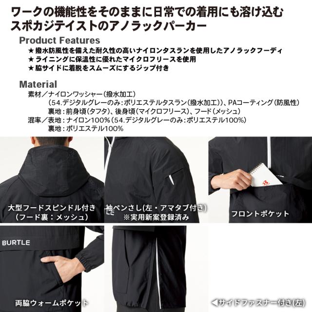 BURTLE バートル 25-26秋冬 アノラックパーカー ユニセックス ストレッチ ハーフジップ 長袖 防寒着 軽量 静電 保温 作業服 作業着 スポーツ アウトドア BURTLE 4054 宅配のみ