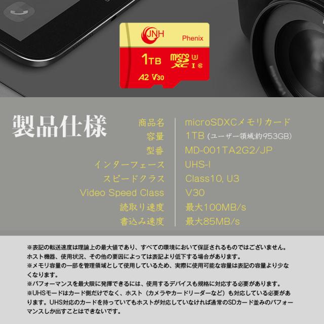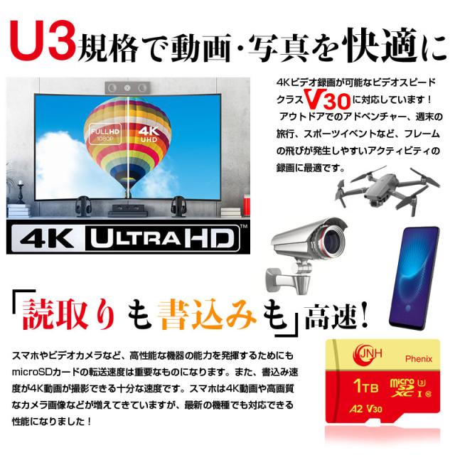 マイクロsdカード microSDXC 1TB JNH R:100MB/S W:85MB/S Class10 UHS-I U3 V30 4K Ultra HD A2対応 5年保証 Nintendo Switch 動作確認済 microsdカード micro sdxc カード 1tb ポイント消化