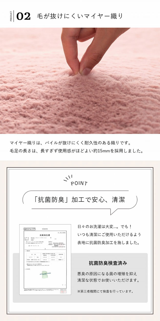 表地=ポリエステル100%(フェイクファー・抗菌防臭加工)