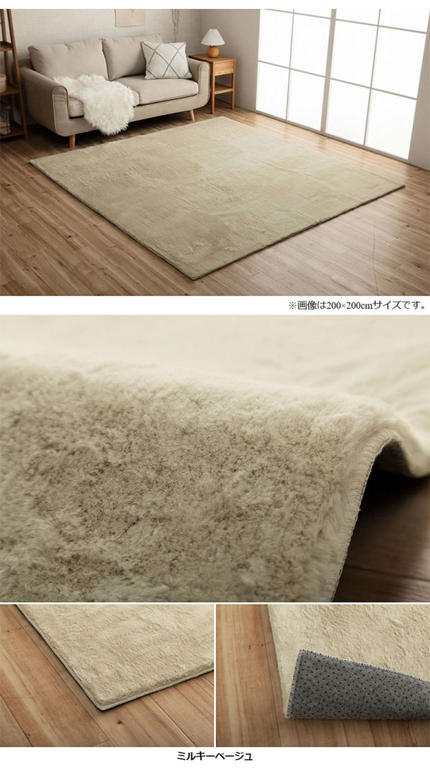 カーペット かわいい ふわふわラグ ラピアス 200x300cm シャビーシック ホットカーペット対応 床暖房対応 マイヤー織り フェイクファー 抗菌 防臭 洗える 寝室