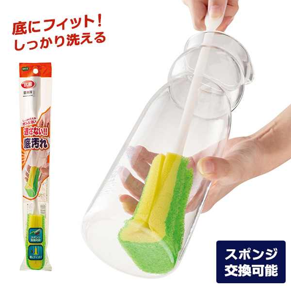 ボトルブラシ しっかり洗える ボトル洗い | 水筒 洗い グラス洗い 柄付き 食器洗い 日本製 抗菌 加工 洗浄 ブラシ スポンジ 取り替え コップ