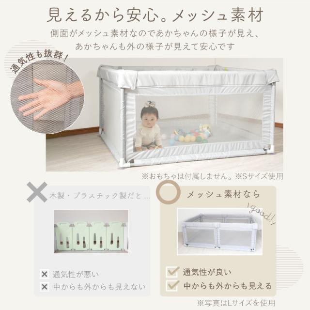 【簡単組立て!やわらかメッシュ素材で中が見えるから安心のベビーサークル】
