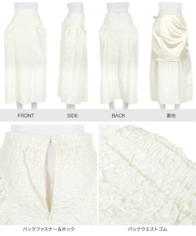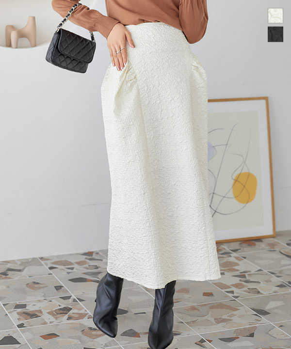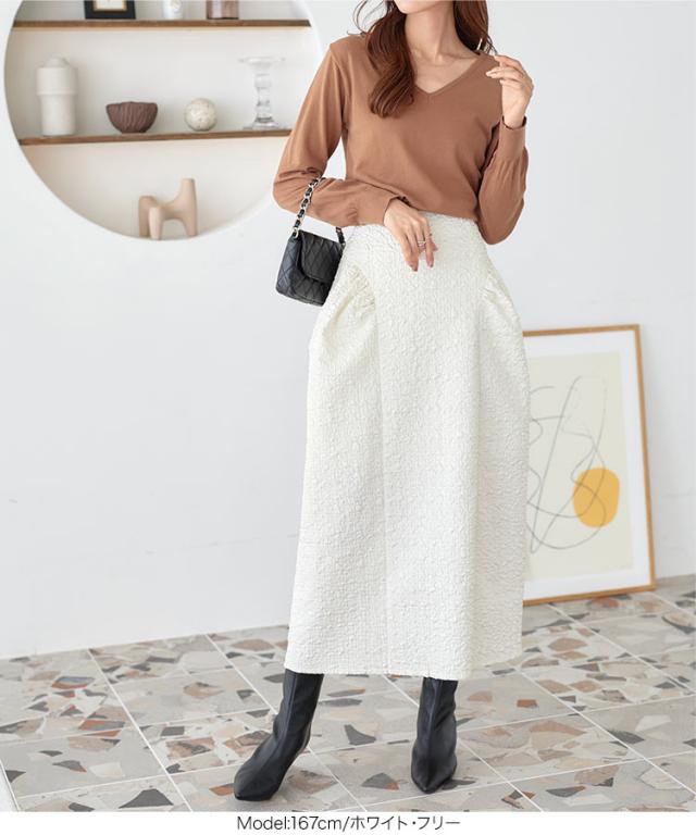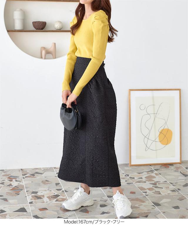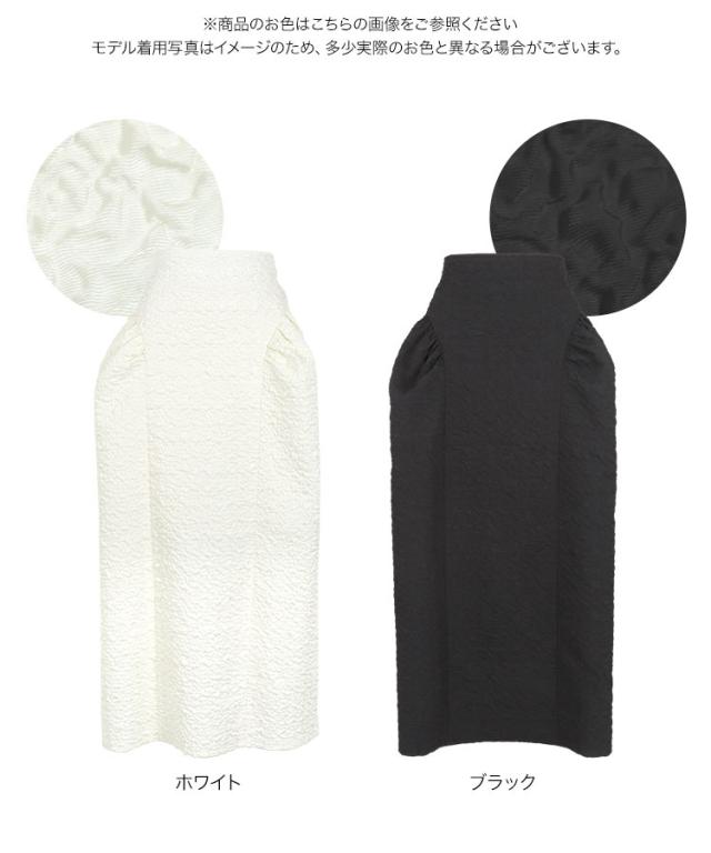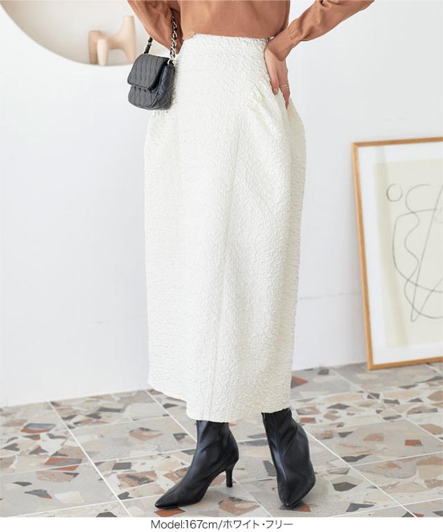 春新作 ジャガードスカート M3968 入荷済 レディース ジャガード ナロースカート ウエストゴム ぽこぽこ コクーン ポコポコ ロングスカート ボリューム ボリュームスカート 白 黒 フェミニン 大人可愛い フレアスカート バルーンスカート