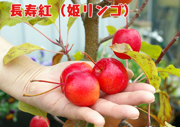 長寿紅は長期間観賞できる身持ちよく縁起の良いヒメリンゴです。