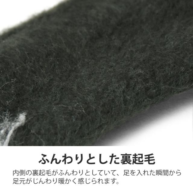 内側の起毛がふんわりとしていて、足を入れた瞬間からぽかぽかとしたぬくもりが広がります。しっかりとした厚みがあり、寒い季節にも安心して履けるアイテムです。