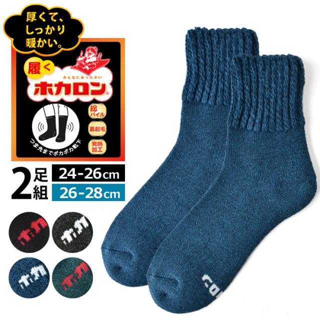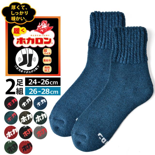 ホカロン 靴下 ソックス メンズ 紳士 2足組 発熱加工 総パイル 裏起毛 履くホカロン 暖 冷え対策 ショート丈 厚手【A9F】【送料無料】【メール便2】【mens】 冬新作