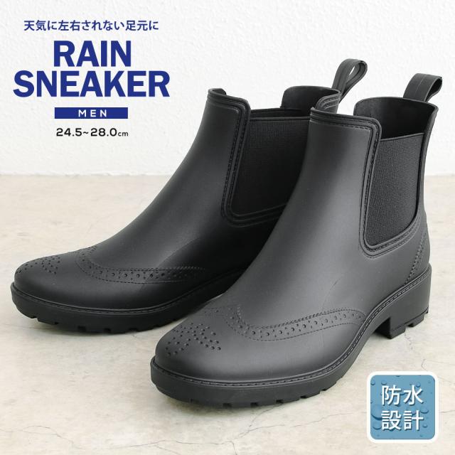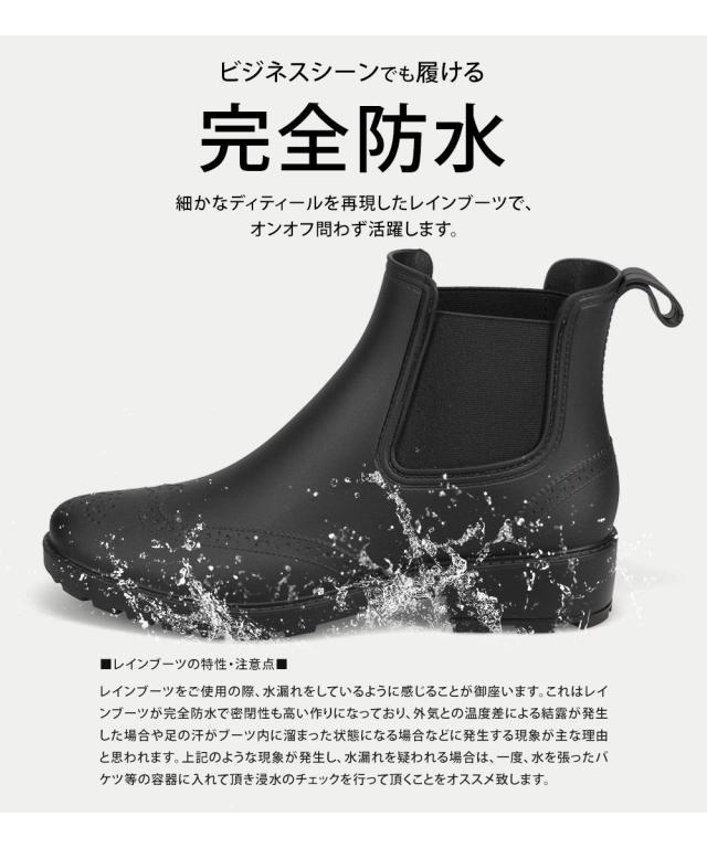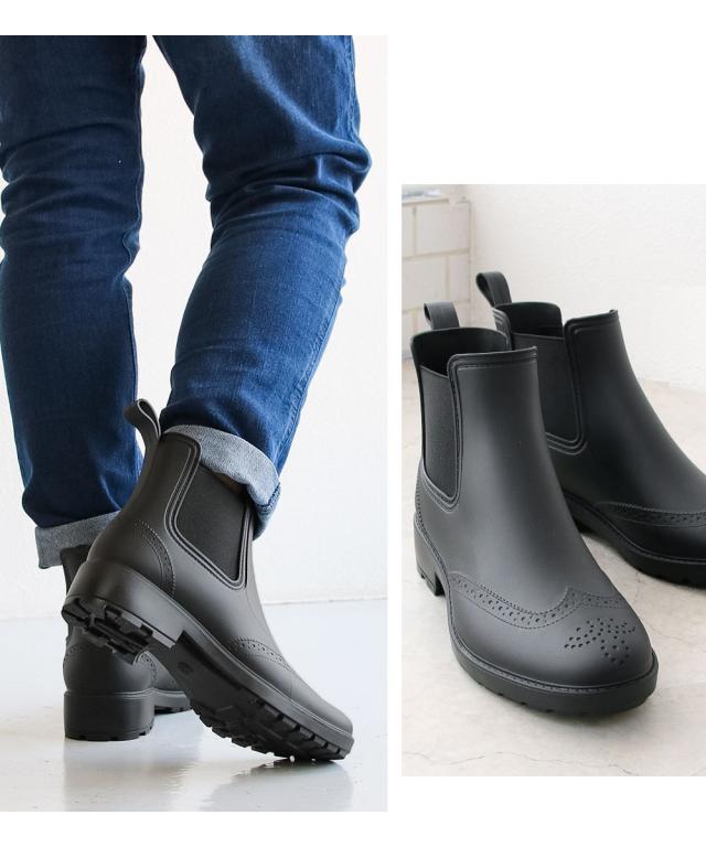 レインブーツ メンズ レインシューズ おしゃれ 長靴 軽い サイドゴアブーツ メンズ ショートブーツ 黒 防滑 メダリオン ウイングチップ 完全防水 ビジネスブーツ 通勤 仕事履き 歩きやすい 軽量 大きいサイズ ファッション 744
