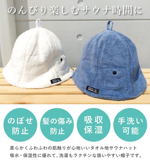 吸水・保湿性にも優れているから、サウナ内の熱による頭皮や髪へのダメージ軽減・のぼせ防止に活躍してくれます。