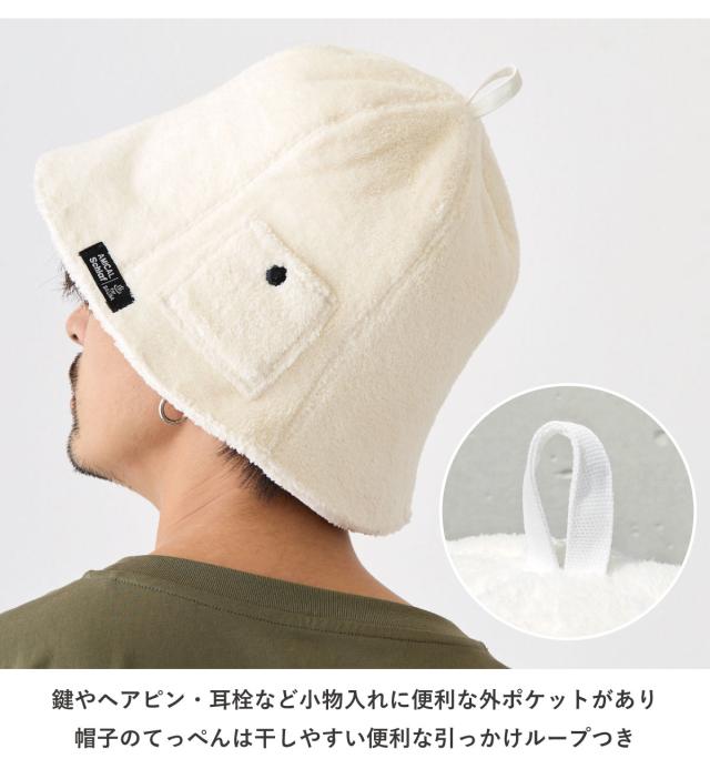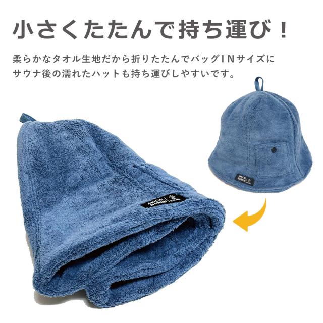 ふわふわパイル生地 サウナハット 髪や頭皮を守る 帽子 ポケット付き 小物 鍵入れ 洗える 男女兼用 耳まですっぽり 60cm フリー hat-1491 タオル地 サウナキャップ BIG 帽子 メンズ レディース 折り畳み のぼせ防止