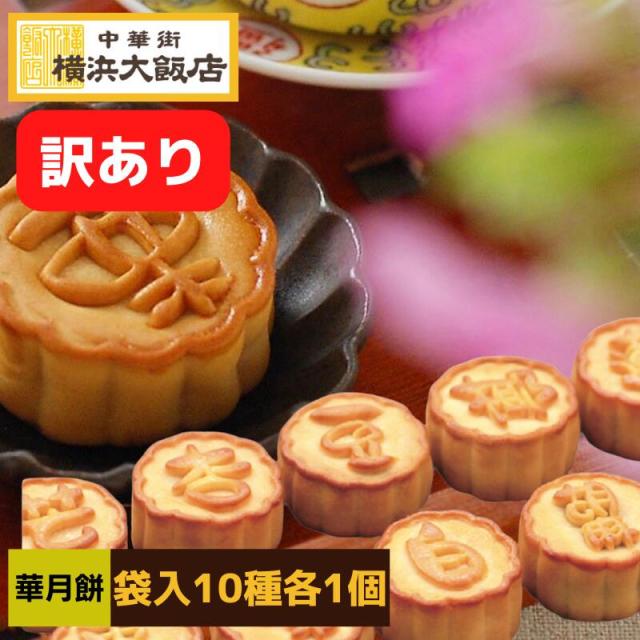 訳あり 華月餅 ミニ月餅 10種各1個詰め合わせ 袋入り 横浜大飯店 月餅 中華菓子 中華スイーツ 焼き菓子 2000円 ポッキリ 送料無料 お試し ご自宅用 クリックポスト 冷凍グルメ