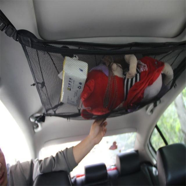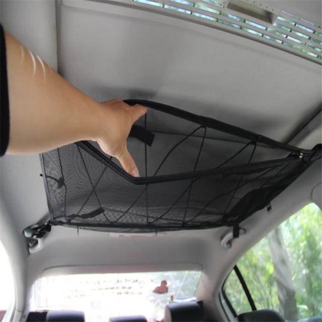 車 収納 天井 ネット ファスナー付き 車中泊 ミニバン SUV ポケット 荷物 ルーフネット 車内 小物入れ キャンプ アウトド