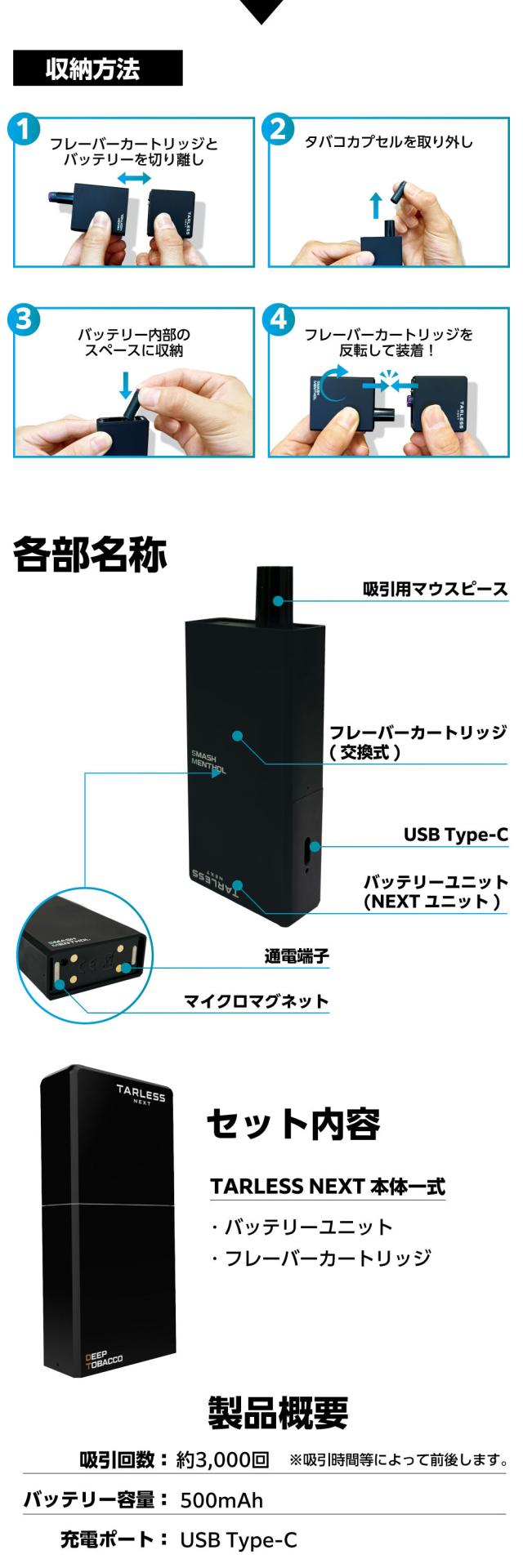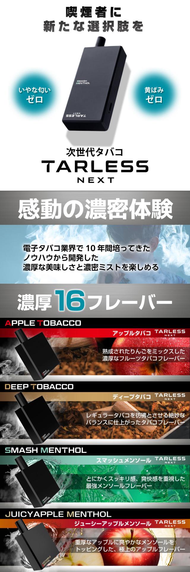 ぜひ、新世代の電子タバコ tarless nextをお楽しみくださいませ。