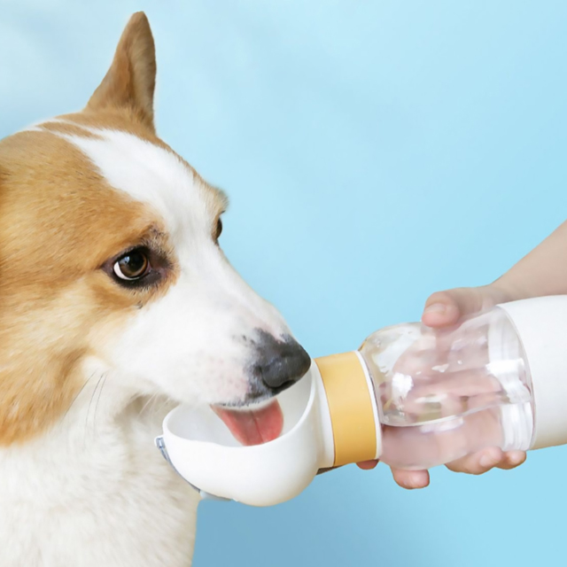持ち運びに便利な犬用携帯水筒!どこでも美味しいお水とおやつ餌があげられます!