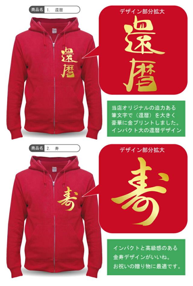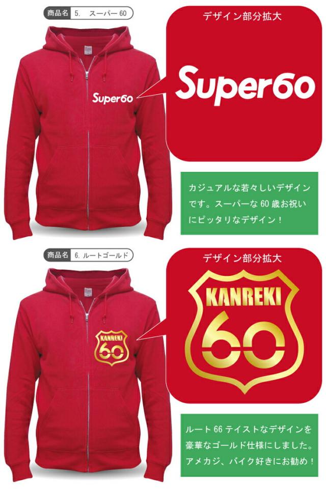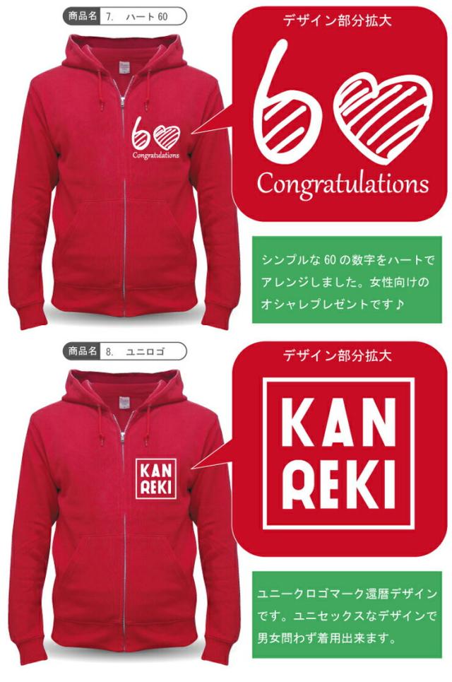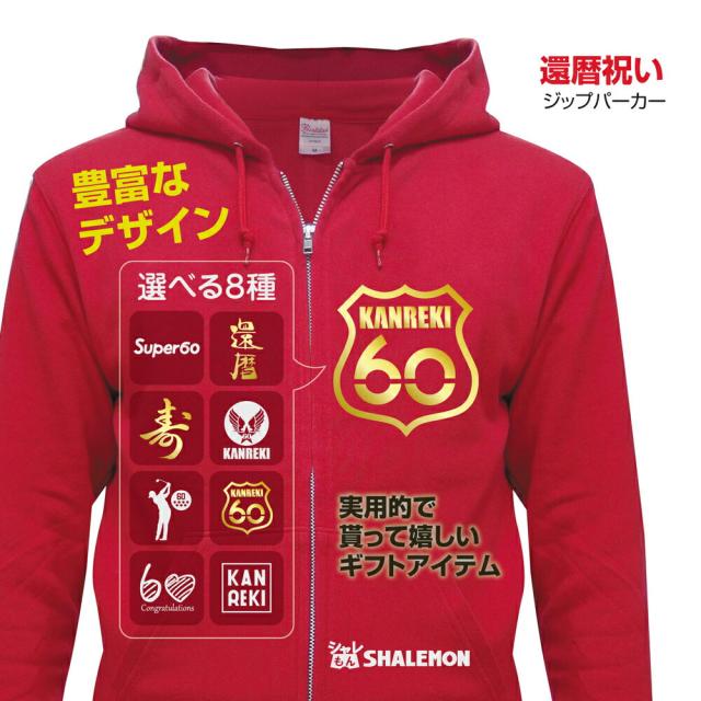 還暦祝い 父 母 スウェット 【 ジップパーカー 】【 還暦 選べる8種デザイン 】 赤い 男性 女性 ジッパー ちゃんちゃんこ の代わり 60歳 プレゼント しゃれもん サプライズ
