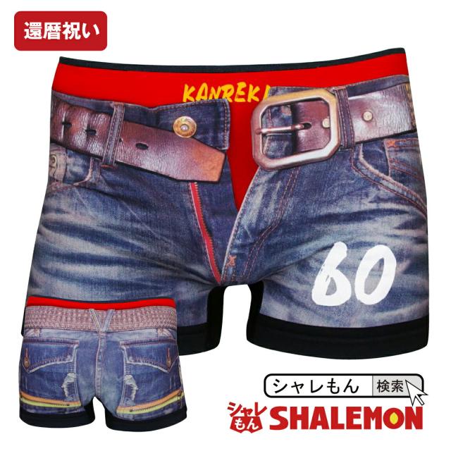 還暦祝い プレゼント 男性 メンズ 父 デニムに見える パンツ 【 ボクサーパンツ 】【 還暦デニム 】 シームレス 還暦 赤い ちゃんちゃんこ の代わり 赤い下着 おもしろ シャレもん しゃれもん サプライズ