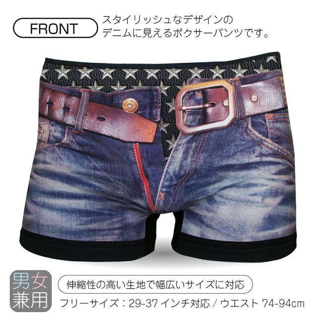 ボクサーパンツ 男女兼用 【 シームレス デニムスター 】 ジーンズ メンズ レディース 見せパン 男性 女性 お揃い しゃれもん