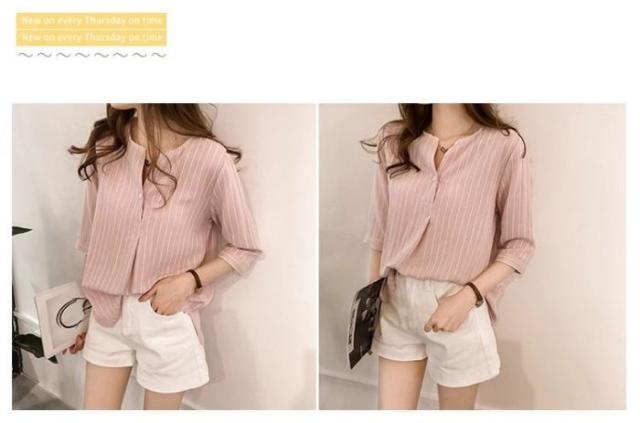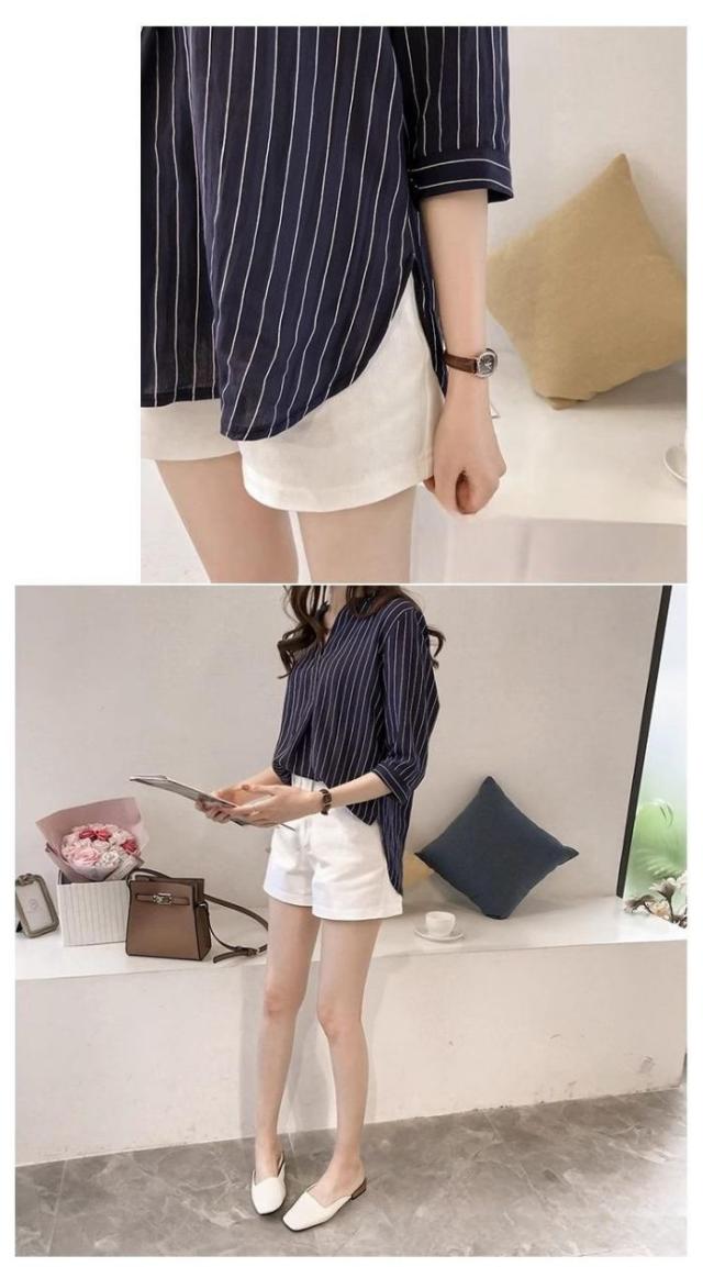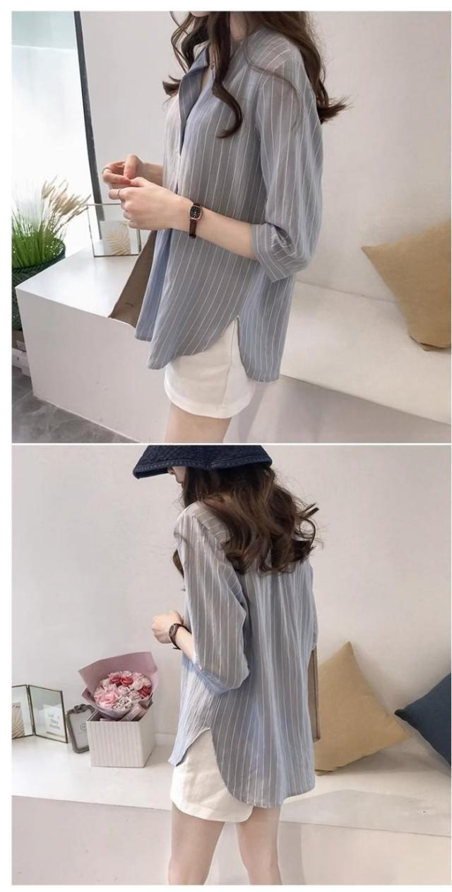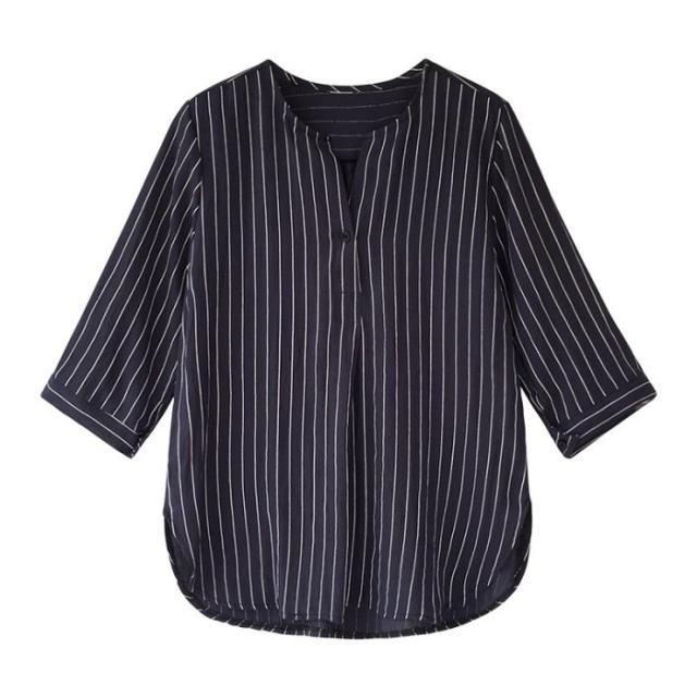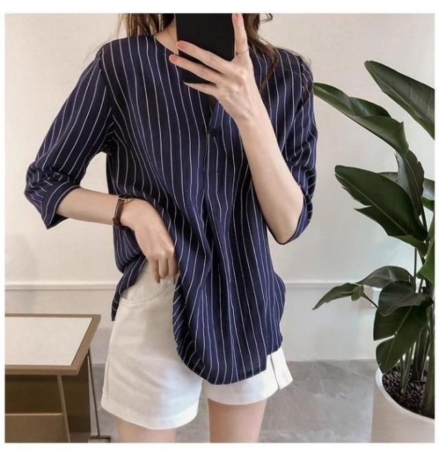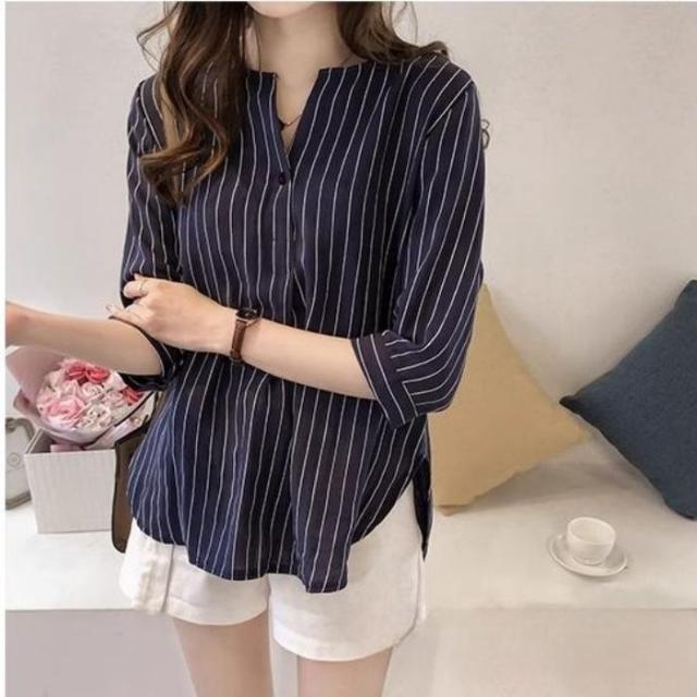 シャツ レディース スキッパーストライプ ブラウス Tシャツ 春 カジュアル かわいい ゆったり オフィス トップス 夏 白 ボタン 襟付き おしゃれ