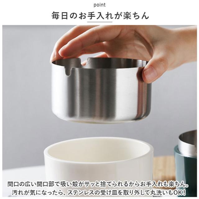 | 商品説明 | ・紫煙をくゆらすひと時に、清潔感と安心感をプラス!インテリアにスッキリと馴染む「木製フタつき灰皿」が新登場。 【機能性と美しさを追求したルックス】 ・艶やかな光沢のある灰皿本体にナチュラルな天然木のフタを合わせた、安全に使える機能性と無駄のないシンプルなルックスを追求したアッシュトレイ。 【耐火性に優れたステンレス受け皿】 ・灰皿本体には、煙草の燃えさしが延焼することを防ぐ、耐火性に優れたステンレス製の受け皿を内蔵。受け皿に水を溜めて使用すれば、さらに安全性が向上。 【受け皿には便利なU字溝付き】 ・受け皿のフチ3ヶ所にはU字溝を刻みこみ、吸い掛けのたばこを挟んだり、灰を落とすときに便利。風除け効果もあるので、屋外での一服にも最適。 【木製のフタで清潔感をキープ】 ・木製のフタが、ステンレス受け皿のフチにフィットしてしっかり密閉。吸い殻をカバーすることでニオイ漏れを防ぎ、すっきり清潔感のある見た目をキープ。 【毎日のお手入れが楽ちん】 ・間口の広い開口部で吸い殻がサッと捨てられるからお手入れも楽ちん。汚れが気になったら、ステンレスの受け皿を取り外して丸洗いもOK! 【ヘビースモーカーでも安心】 ・コロンと丸みのあるコンパクトなデザインながら、煙草3箱程度の吸い殻が入る大容量設計。吸い殻を捨てる頻度が少なく済むのも嬉しいポイント。 【空間に温かみを添えるデザイン】 ・陶器のような落ち着きのあるカラーと、ナチュラルな天然木のフタがお部屋のインテリアに優しくフィット。ご自宅でのリラックスタイムにはもちろん、オフィスやショップにもオススメ。 |