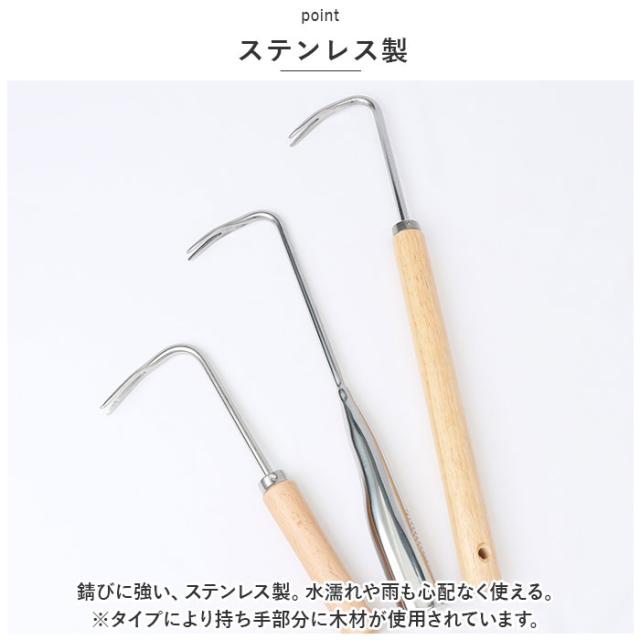 | 商品説明 | ・気になる雑草を根こそぎスッキリ!ガーデニングの土起こしなどにも◎「草取り」が登場。 【根こそぎスッキリ】 ・草を、根っこから除去できる除草ツール。鋭利なクワ部分で手を汚さずに草取りができる優れもの! 【土起こしにも】 ・ガーデニングや家庭菜園などの土起こしにも使える◎お家にひとつ置いておきたいアイテム。 【軽量】 ・女性やお子様でも使いやすい軽量設計。軽いので疲れにくく、作業もスムーズに進む◎ 【コンパクトサイズ】 ・片手で簡単に使えるコンパクトサイズ。持ち運びにも便利で収納場所を取らないのも嬉しいポイント。 【シンプル】 ・シンプルなデザインで、玄関やお庭に置いても様になる☆ガーデニングアイテムにこだわる方にオススメ。 【ステンレス製】 ・錆びに強い、ステンレス製。水濡れや雨も心配なく使える。(※タイプにより持ち手部分に木材が使用されています。) |