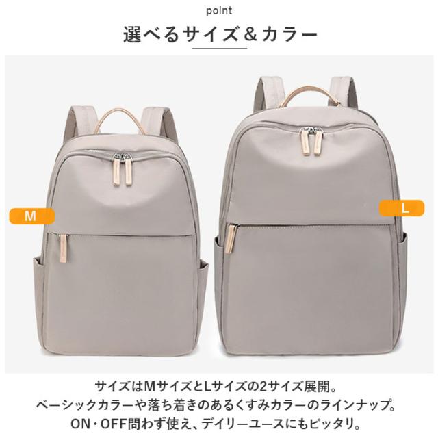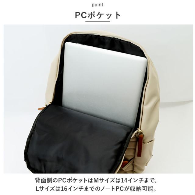 | 商品説明 | ・無駄のないシンプルなデザインの「PCリュック」が発売。 【ダブルファスナー式】 ・開口部は大きく開くダブルファスナー式。中身が確認しやすく、出し入れもラクラク。 【PCポケット】 ・背面側のPCポケットはMサイズは14インチまで、Lサイズは16インチまでのノートPCが収納可能。 【充実したポケット】 ・フロントやサイド、バックにポケットを配置し、整理整頓しながら収納でき実用性◎ 【撥水加工】 ・撥水加工を施した生地を使用しているので、雨の日のお出かけも安心。 【キャリーオンベルト付き】 ・背面はキャリーバッグにリュックを固定できるベルト付き。 【選べるサイズ&カラー】 ・サイズはMサイズとLサイズの2サイズ展開。ベーシックカラーや落ち着きのあるくすみカラーのラインナップ。ON・OFF問わず使え、デイリーユースにもピッタリ。 【ポケット仕様】 メイン内側:オープンポケット×3、ファスナーポケット×1 背面:PCポケット×1、ファスナーポケット×1 フロント:ファスナーポケット×1 サイド:オープンポケット×2 |
