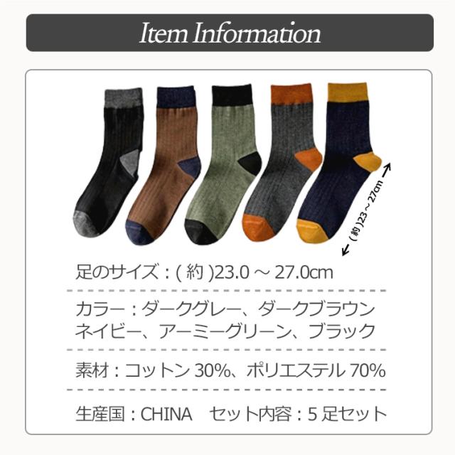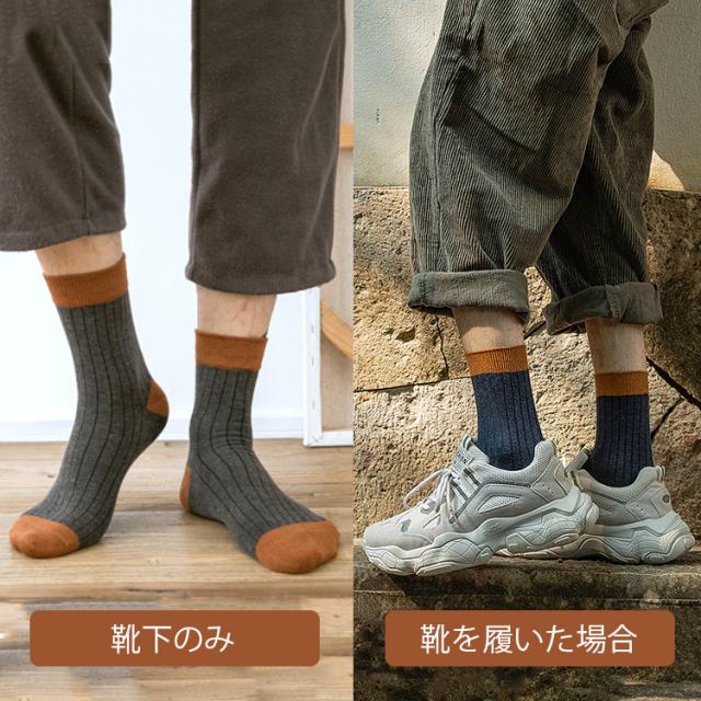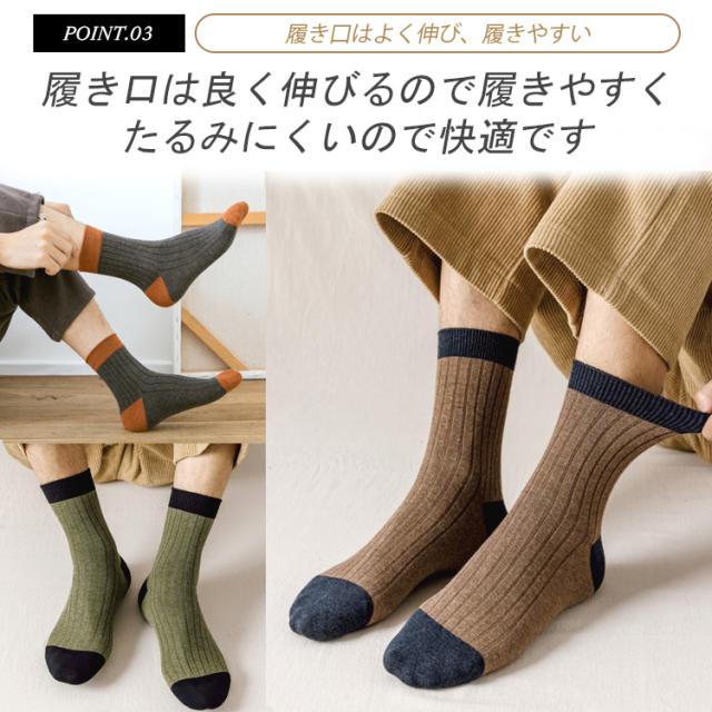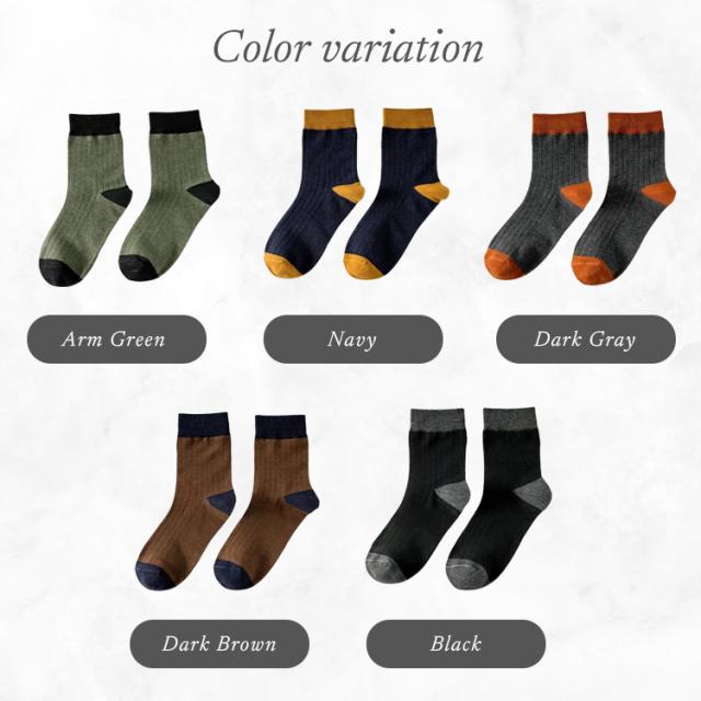 靴下 メンズ おしゃれ 5足セット メンズ靴下 23〜27cm メンズソックス バイカラー ツートン シンプル クルー丈ソックス くつした くつ下 セット かっこいい クルー丈 春 夏 秋 冬 オールシーズン コットン 綿 秋冬用