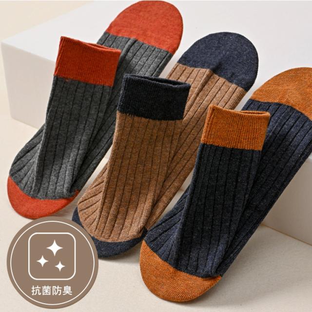 【バイカラーがおしゃれでかっこいい♪クルー丈ソックス 5足セット】