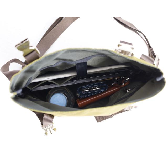 異形糸を使っている為上品な光沢感のある高密度のツイル生地に仕上がっているショルダーバッグ。