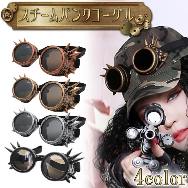ゴーグル スチームパンク 4カラーアンティーク コスプレ レトロ ハロウィン メガネ パンキッシュ サバゲー 送料無料