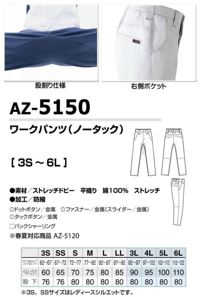 AITOZ アイトス ノータックワークパンツ AZ-5150 綿素材 ストレッチ 春夏 作業服 男女兼用 サイズ3S〜LL