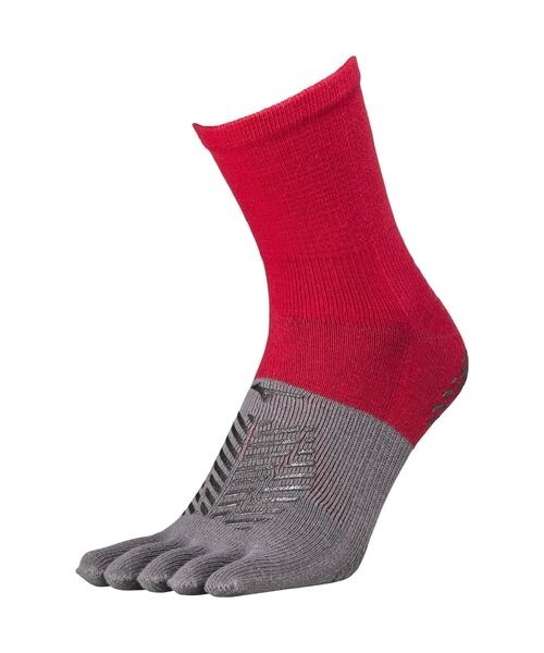 両面にグリップ力を有する5本指ショートソックス。4か所の滑り止めでグリップを高める設計。肌面にはナノフロント糸を使用し、グリップ力向上。